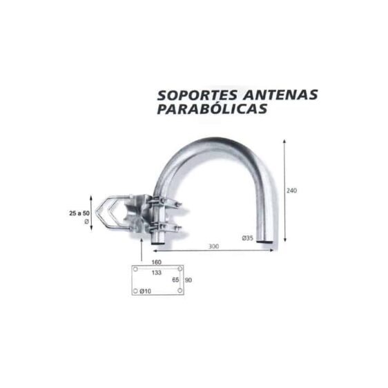 Soporte de parabólica para mástil o pared tipo U.