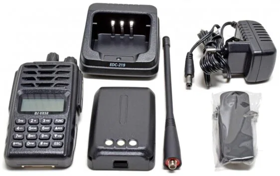 - Pack completo con antena, batería, cargador de sobremesa, pinza y manual