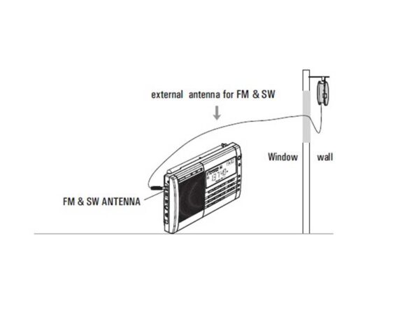 Para mejorar la recepción de FM y de onda corta, conecte el AN-06 a la toma de antena FM / SW externa de su radio, y luego coloque el carrete en un lugar alto (cerca o fuera de una ventana).