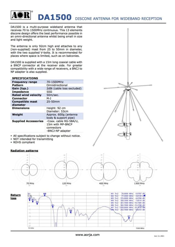 - Rango de frecuencia RX: 70 – 1500 MHz