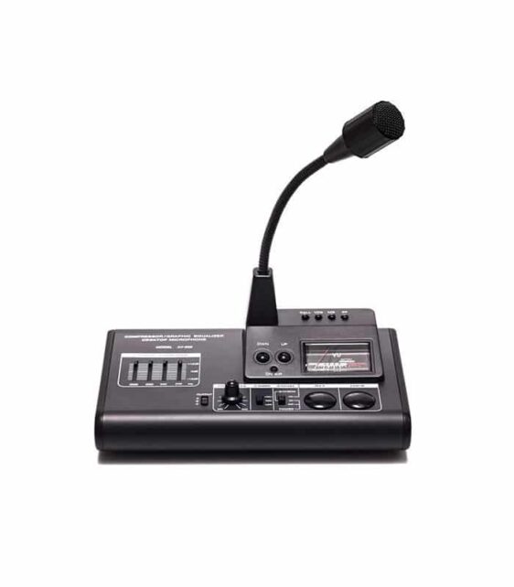 Micrófono de sobremesa con previo compresor (Alto/Medio/Bajo). Micrófono cerámico de alta sensibilidad.
