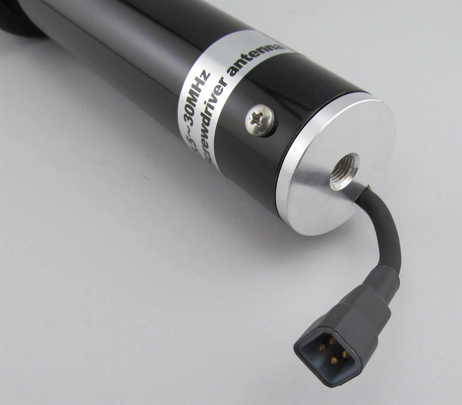 Antena móvil HF telegirada automática, cobertura 3,5–30 MHz, longitud 1,85 m, potencia hasta 200 W — ideal para radio en vehículo o móvil.
