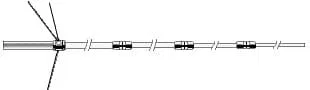 144/430 MHz. 4 x 5/8l – 11 x 5/8l  9,3 dBi – 13,0 dBi  350 W. máx. 3 radiales de 52 cms. 720 cms. Fibra de vidrio, 4 tramos. 40 m/s. máx. Conector “N” hembra