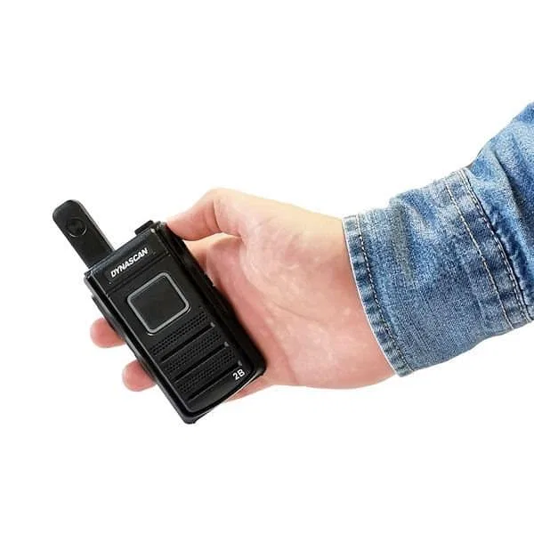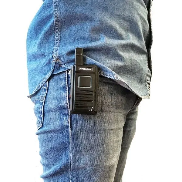 El Dynascan 2B es un nuevo Walkie-Talkie PMR-446 de tamaño compacto que no requiere licencia y ideal para tiendas, almacenes, restauración y sector servicios, que permite a los usuarios comunicarse de forma gratuita con el resto de walkies. La antena sólo sobresale lo necesario del cuerpo del dispositivo, por lo que es ideal para aquellos que trabajan de cara al público, por ejemplo, en tiendas o eventos, y necesitan una máxima discreción El Dynascan 2B es un walkie talkie PMR446 pequeño, cuenta con 8 canales y permite programar hasta 16. Además dispone de función VOX y temporizador de transmisión (TOT), para evitar que el transceptor ocupe un canal transmitiendo durante un tiempo prolongado. También permite bloquear el teclado, de manera que evitará manipulaciones no intencionadas en el transceptor.