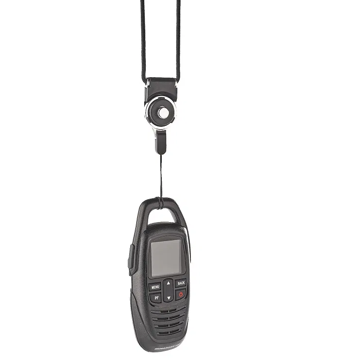 Su diseño compacto y funcional con antena integrada permite llevarlo cómodamente en el bolsillo o colgado al cuello gracias al soporte de sujeción con botón de liberación rápida incluido. A pesar de su tamaño, ofrece una gran calidad de comunicación y estabilidad en la transmisión.
