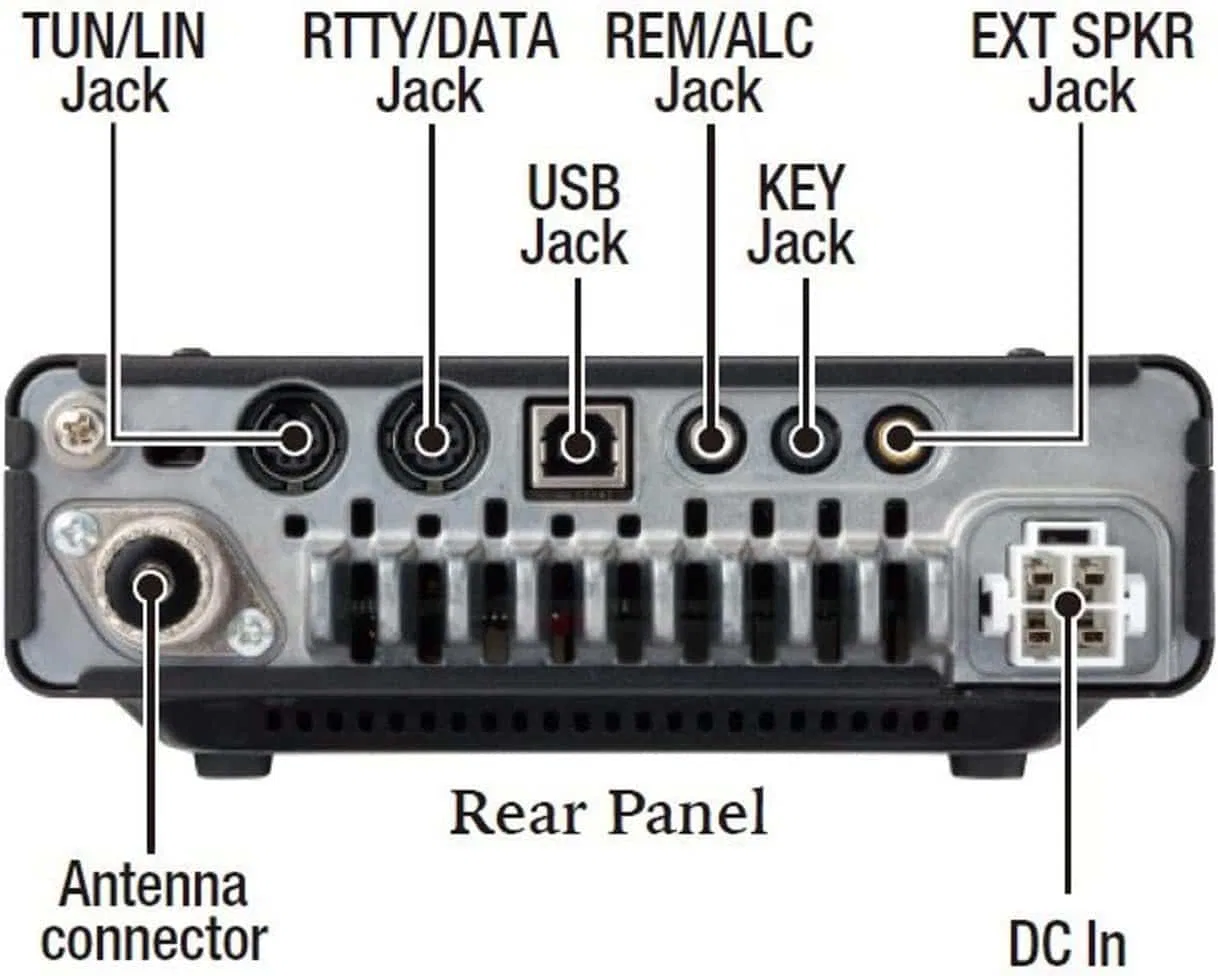 Potencia de salida: 100W SSB/CW/FM y 25W en AM.