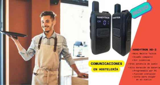 Descubre el MINI Transceptor Portátil HANDYTRON HD-2: compacto, ligero y repleto de funciones avanzadas con la calidad de esta marca para una comunicación confiable en cualquier lugar. Ideal para el uso en Hosteleria. Con un diseño ultra compacto y una correa para el cuello incluida, este transceptor es perfecto para actividades al aire libre, viajes y más. Equipado con CTCSS – DCS, Scrambler, Compander y función VOX, el HD-2 garantiza una comunicación clara y versátil. ¡Explora su potencial hoy mismo!
