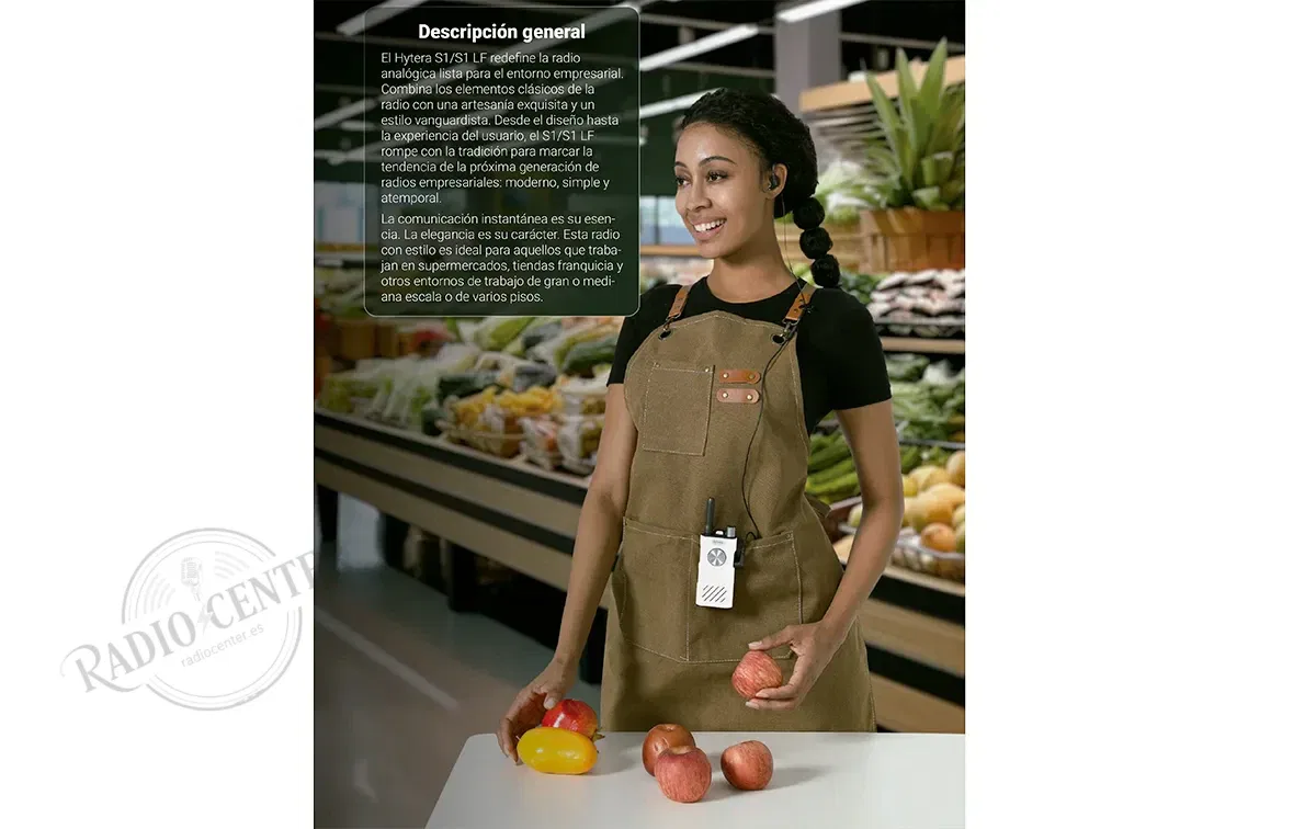 El Hytera S1 LF (HYT-S31) es el paso intermedio en la gama PMR446 de Hytera: mas capaz que el S1 Mini, mas accesible que el S1 Pro. Su principal argumento tecnico es la funcion de doble PTT, que permite asignar dos grupos de comunicacion distintos a los dos botones PTT (frontal y lateral) y conmutar entre ellos sin entrar al menu. Para un jefe de sala que necesita hablar con cocina en un canal y con el personal de piso en otro, esto cambia completamente la dinamica de trabajo.