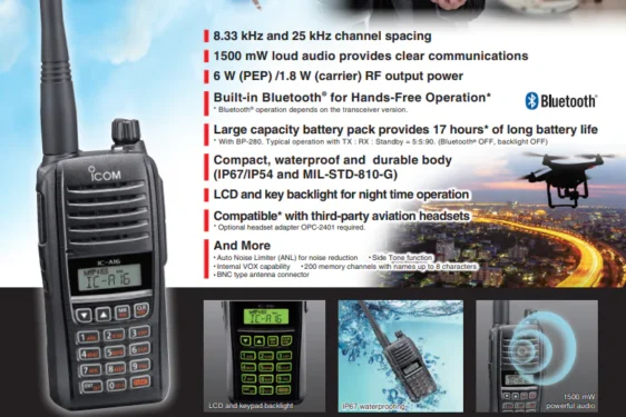 Chasis robusto, resistente al agua y al polvo, cumple la norma IP67/54. Dispone de Bluetooth para operar el equipo manos libres mediante el accesorio VS-3 (no suministrado).