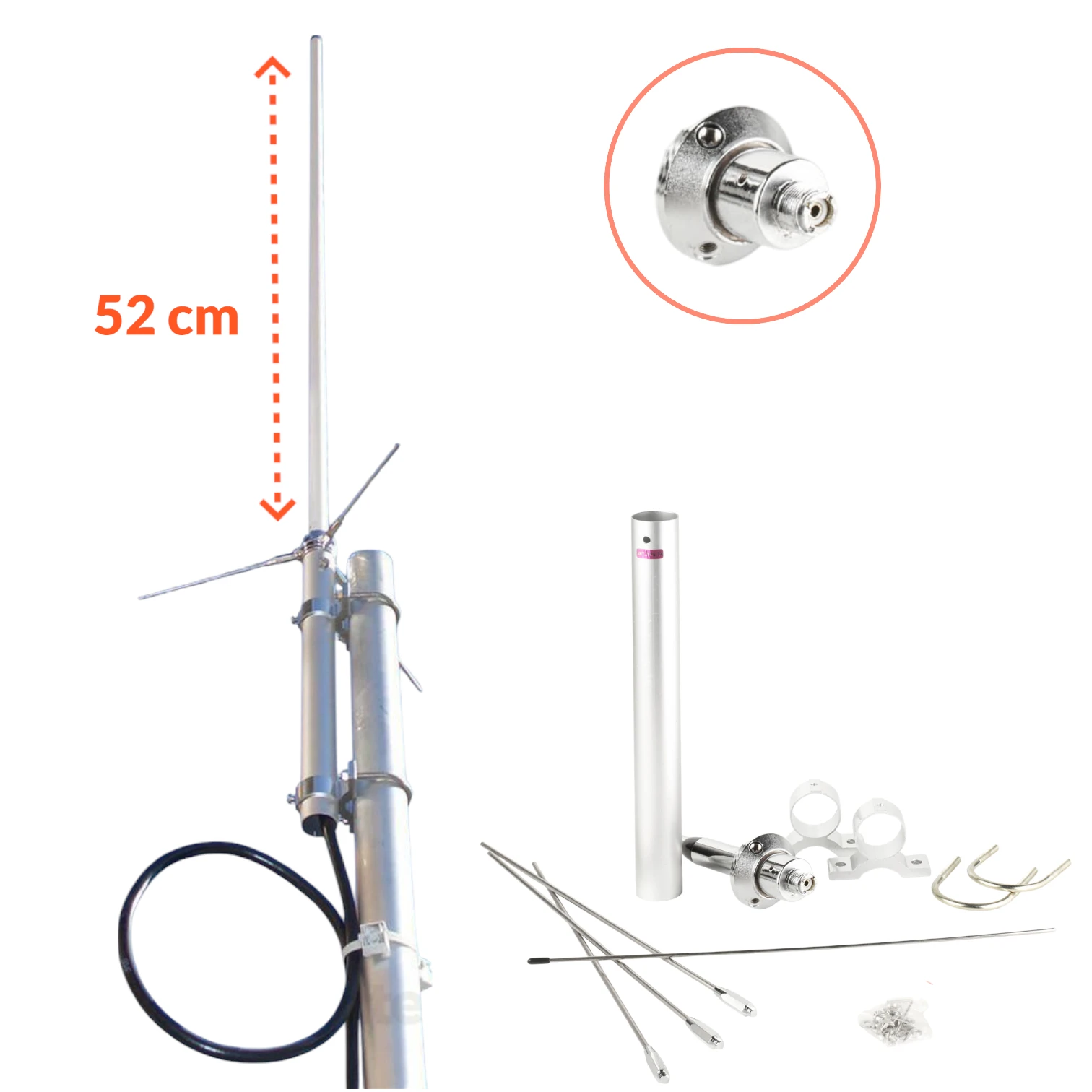 Gracias a su diseño de 1/4 de onda y sus 3 radiales, proporciona una ganancia real de 9 dB y una capacidad de manejo de hasta 100 W de potencia, lo que la convierte en una opción ideal para radioaficionados, profesionales del sector o instalaciones de radiocomunicación.
