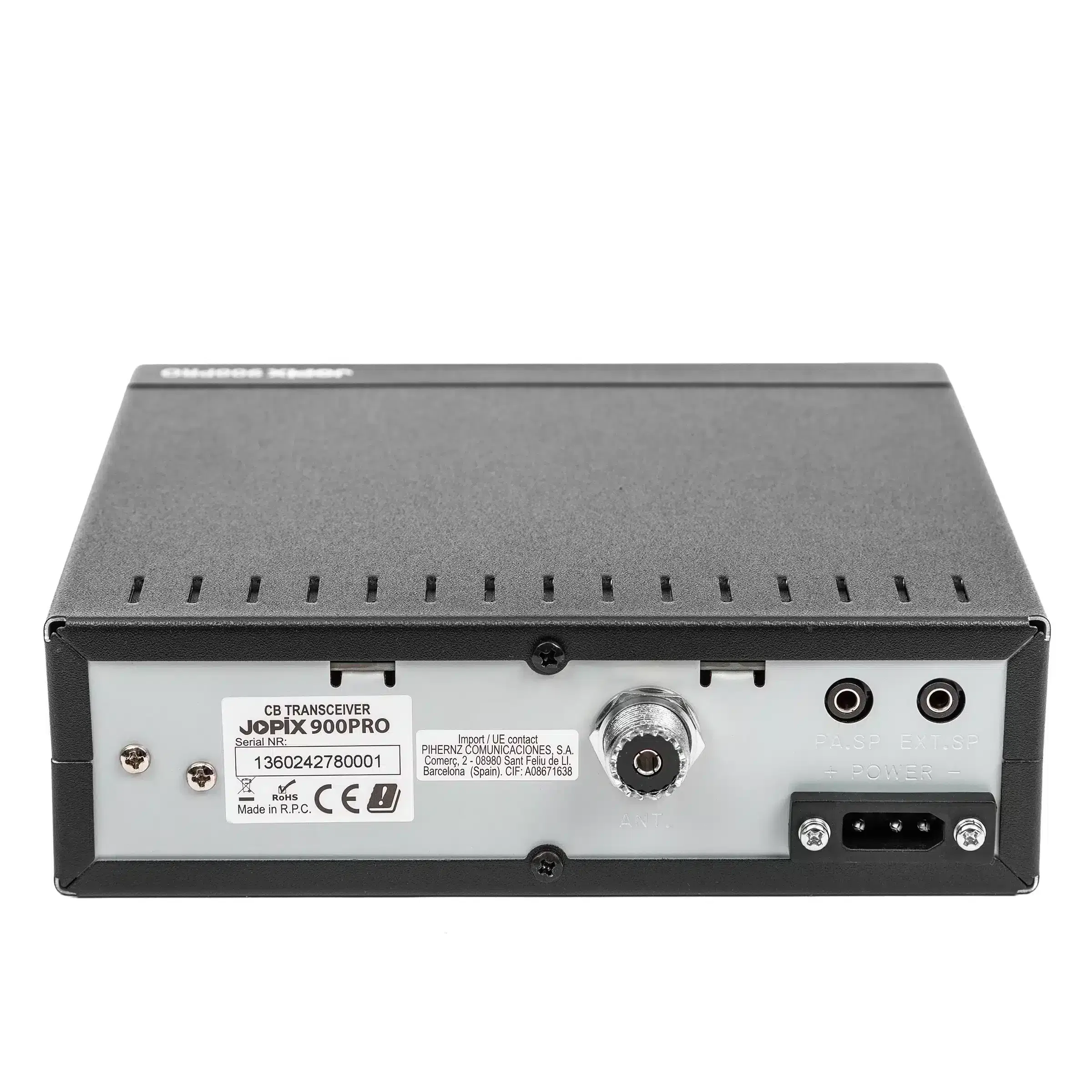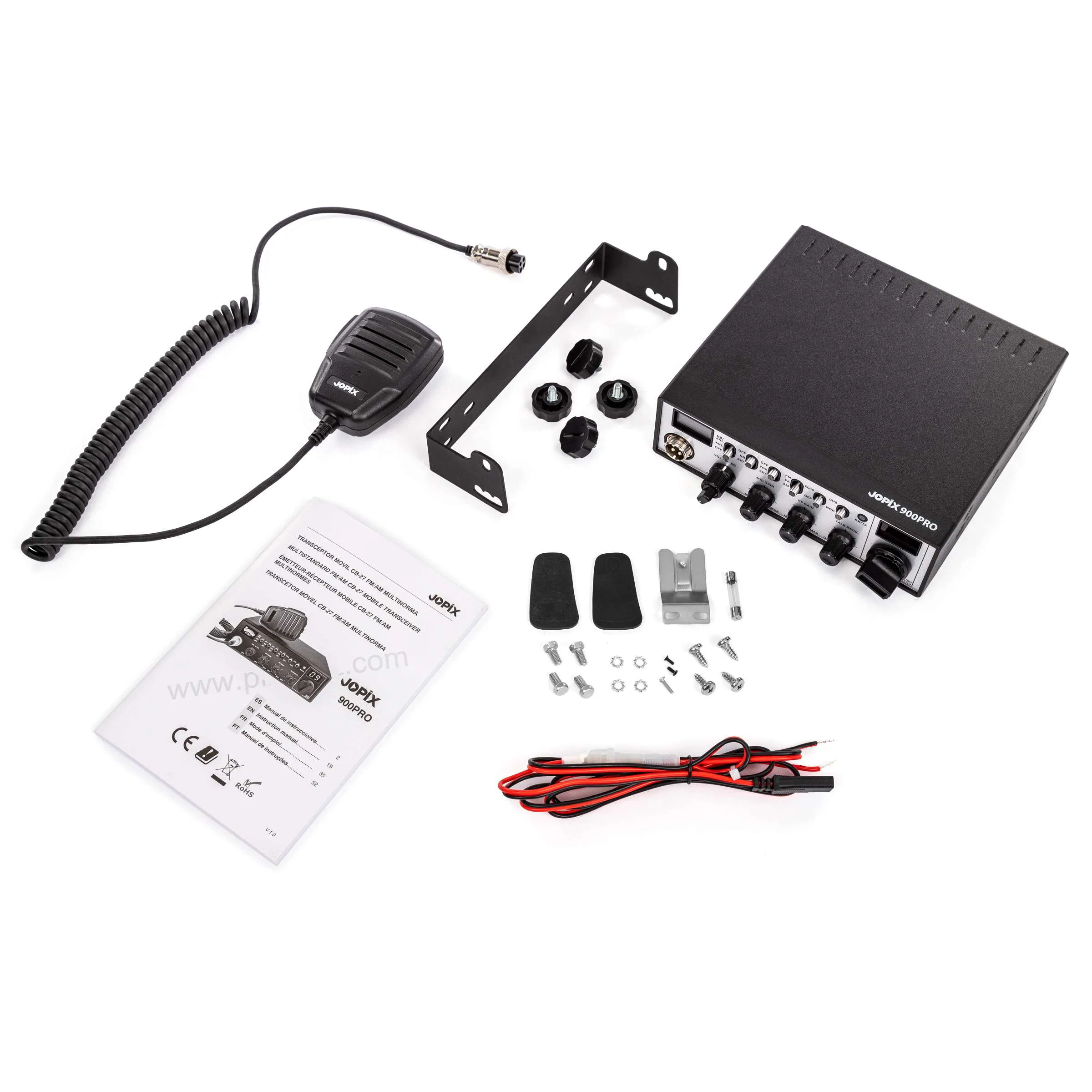 La Jopix 900PRO es una emisora móvil de CB (banda ciudadana, banda 27Mhz) de aspecto clásico y tamaño compacto, con controles sencillos de uso intuitivo, con características destacadas tales como: el sistema avanzado de reducción de ruido, su display LCD de alta resolución con frecuencímetro y SWR Meter con alerta de niveles de ROE excesivo, El Squelch automático (ASQ), función Vox y alimentación multivoltaje 12V y 24V DC, entre otras.