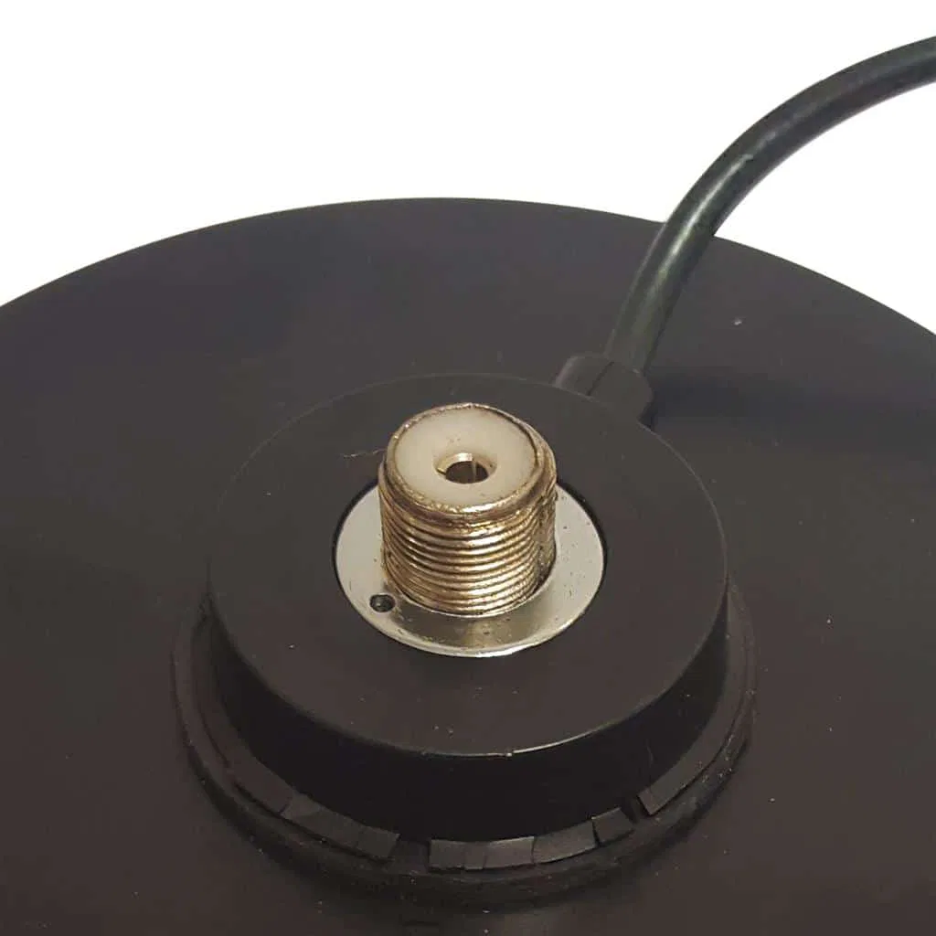Base magnetica de alta calidad. Con 17,5cm de diametro. Viene incluido 4,5m de cable coaxial RG-58 con conector PL instalado.