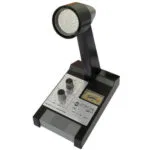 Micrófono de sobremesa preamplificado con regulación de tono e indicador del nivel de modulación.