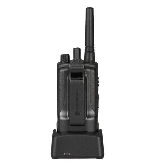 El Motorola XT420 es un walkie talkie profesional diseñado para ofrecer una comunicación clara, inmediata y fiable en cualquier entorno de trabajo. Funciona en la banda PMR446 de uso libre, lo que permite utilizarlo sin licencias ni costes adicionales. Su estructura reforzada y su certificación de resistencia lo convierten en una herramienta ideal para sectores como seguridad, eventos, logística, industria y comercios.