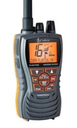 Transceptor portátil completamente impermeable y sumergible (de acuerdo con IPX7), es totalmente flotante, y sobre todo poder ser visto incluso en condiciones de poca luz, gracias a la alta visibilidad de revestimiento de color naranja. Como siempre Cobra Marine nos tiene acostumbrados, el rendimiento de radio son excelentes y permiten una escala no alcanzado antes por un portátil VHF, la potencia de transmisión se incrementó a 6 vatios. Muy útil es el micrófono para eliminar el ruido de fondo (Cancelación de ruido), que ayuda mucho a mantener una conversación clara incluso cuando el motor del barco se encuentra activado. Dispone de todos los canales internacionales y es sumergible según la norma JIS7.