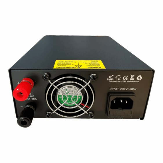 Salida regulada y protegida: Con una salida regulada de 13.8V DC y una capacidad de corriente de 30A, esta fuente de alimentación garantiza la protección de tus dispositivos contra sobretensiones, cortocircuitos y sobrecargas.