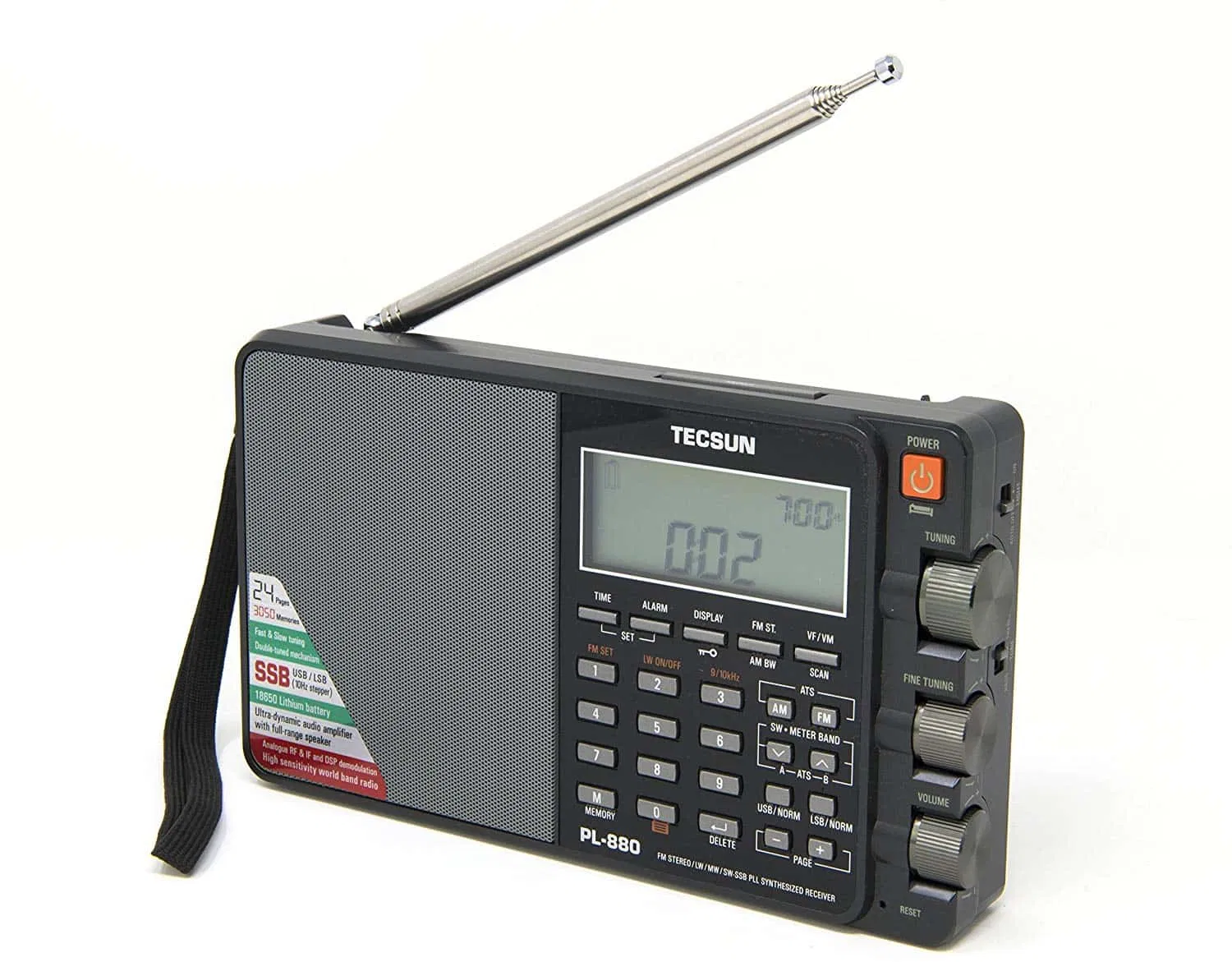 Nuevo receptor multibanda TECSUN® PL-880 es actualmente la radio portatil multibanda SSB mas avanzada de TECSUN®. Sintonizacion contínua SW: 1711~29999KHz, triple conversion, nuevos filtros, alta sensibilidad y selectividad en todas las bandas AM/LW/FM/SW, sobresalientes acabados y excelente audio, banda lateral SSB separada (USB/LSB).