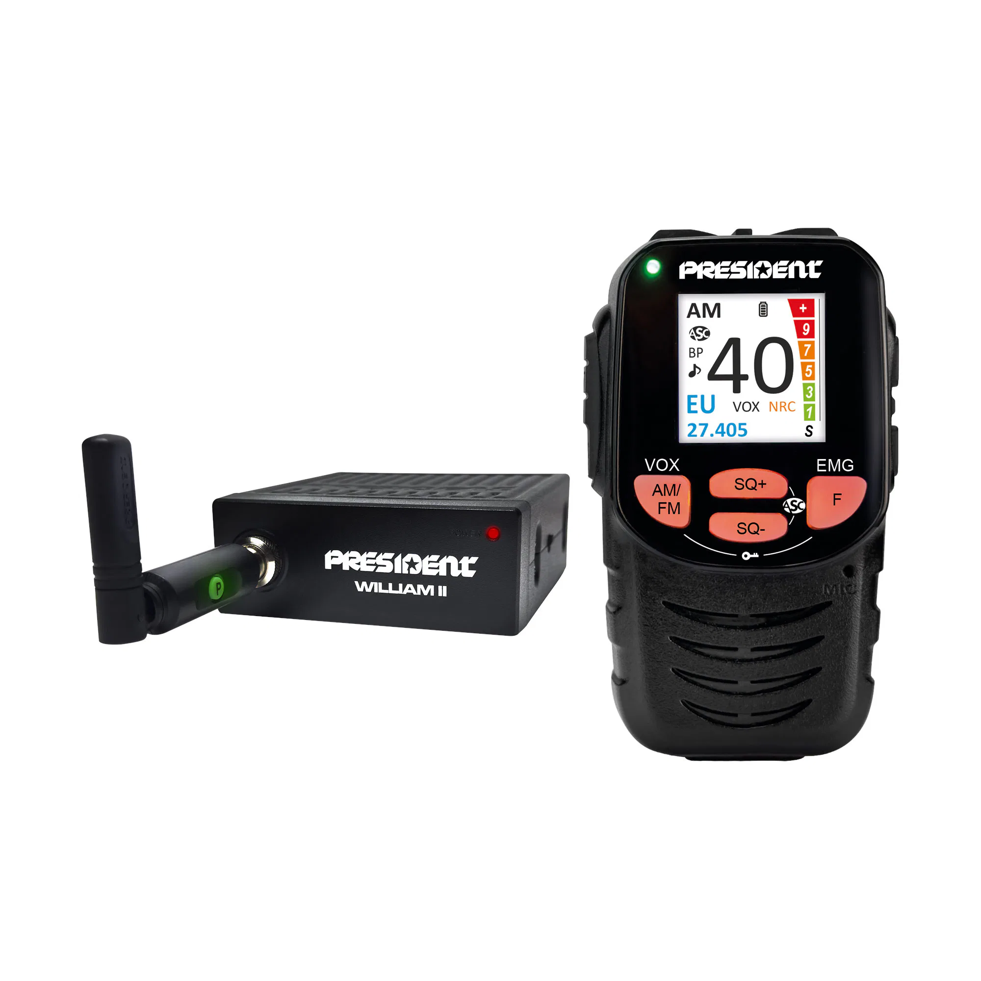 La emisora CB President William II es un equipo compacto y eficiente para comunicaciones en la banda ciudadana de 27 MHz. Ofrece 40 canales operativos en modos AM y FM, adecuados para usuarios que buscan una comunicación sencilla, clara y adaptable a diferentes situaciones.