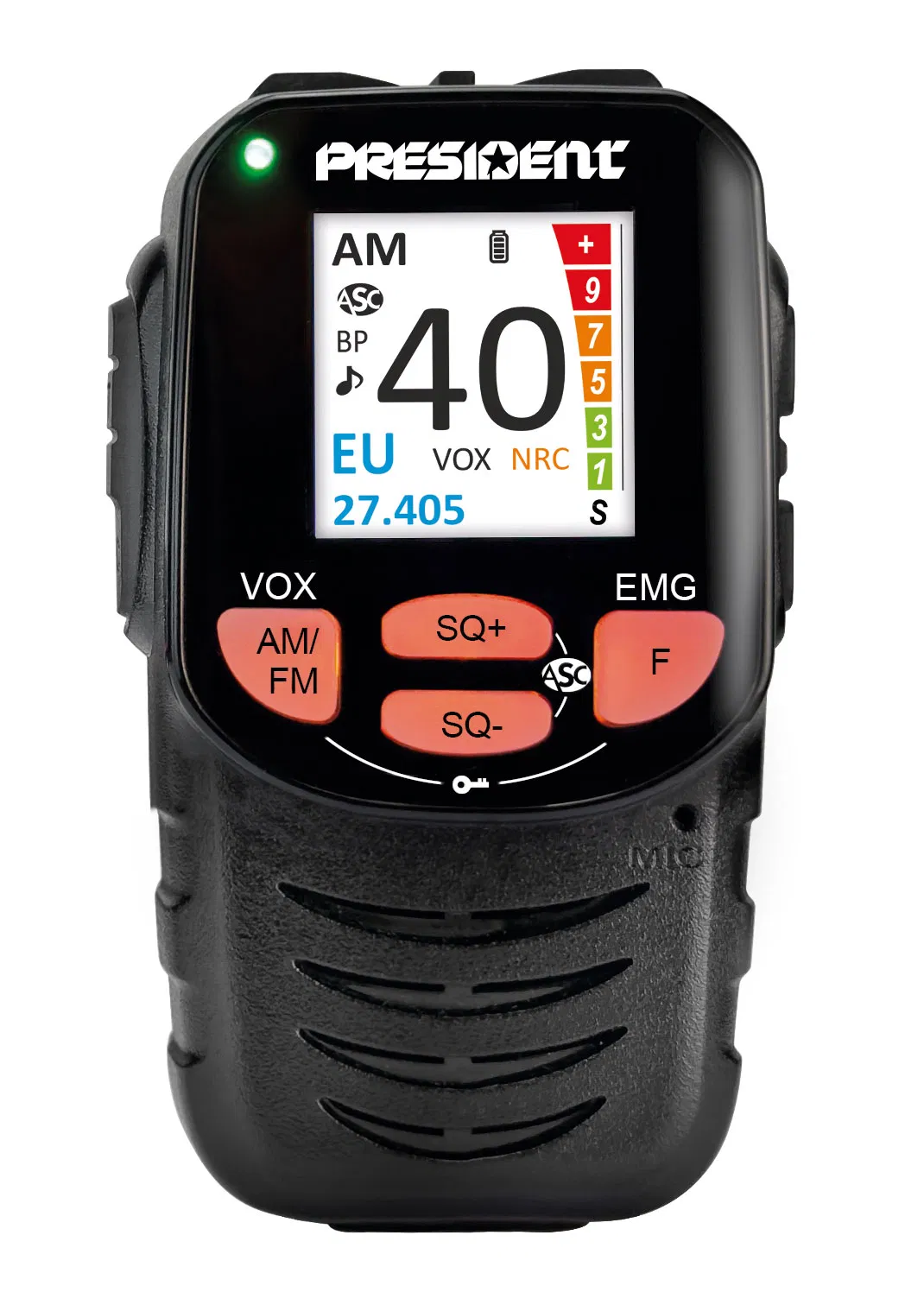 Cuenta con alimentación dual de 12 V y 24 V, lo que permite su instalación tanto en vehículos ligeros como pesados. Incorpora un micrófono inalámbrico que facilita el uso y reduce el cableado, brindando mayor libertad de movimiento al usuario. La unidad dispone de una pantalla digital clara con indicadores LED que muestran la información esencial de manera visual y precisa.