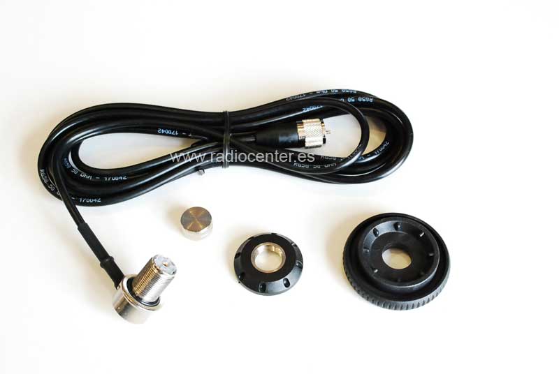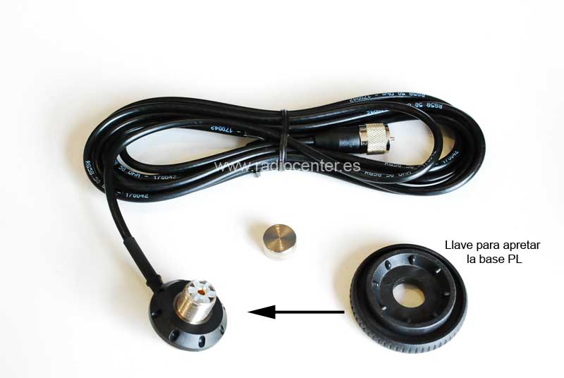 Base angular PL con 4 metros de cable coaxial RG-58/U y conector PL 259 soldado.