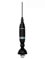Antena CB tipo palomilla. Completa con base y cable. Modelo muy recomendable por su relación calidad – precio –  rendimiento – tamaño. Rango 27..28,5 MHz. Ajustable mediante corte y ajuste fino en bobina. Ancho de banda 130 CH. 1440 KHz. Compatible base tipo N & S. Potencia Máxima aplicable 15 W – AM-FM / 150W SSB