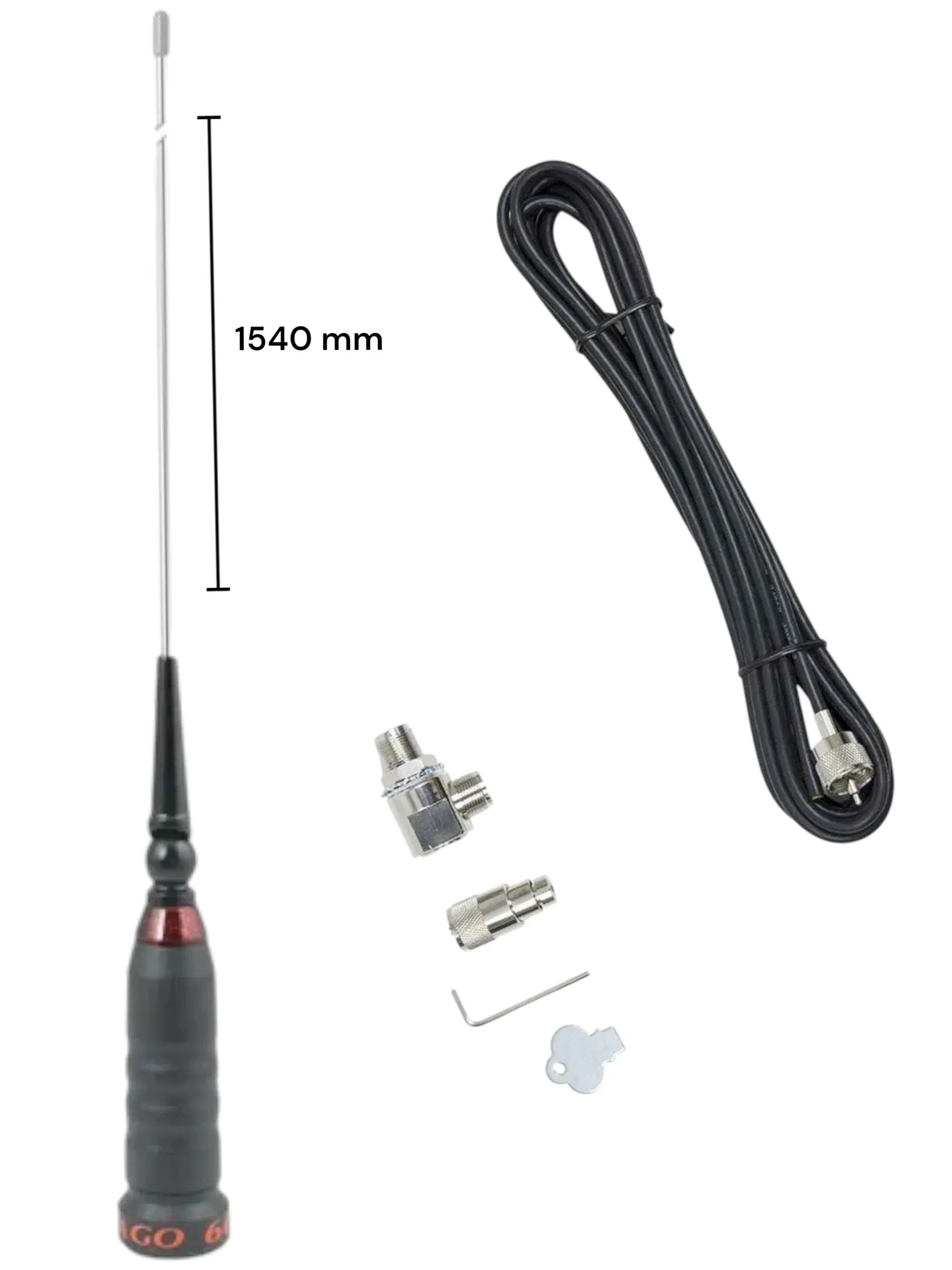 Tipo: 5/8 Onda. Frecuencia: 26-28 Mhz. Potencia máxima: 600W.