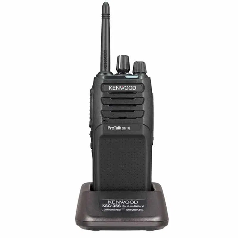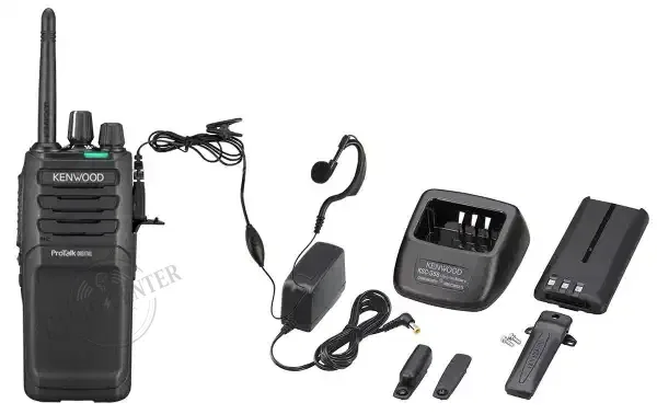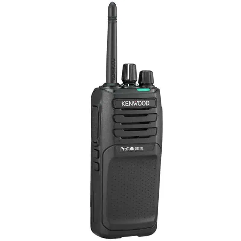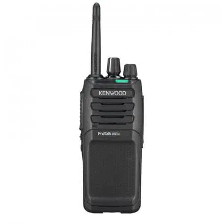 Radio digital walkie TK-3701DE de uso libre dPMR446 y PMR446 de construcción robusta, listo para su uso inmediato. Dispone de 48 canales preseleccionados con 8 frecuencias analógicas y más de 32 frecuencias digitales con encriptador de voz. Incluye batería recargable, cargador de batería y clip para cinturón.