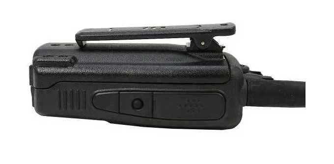 - Botón PTT, luces LED rojas durante TX