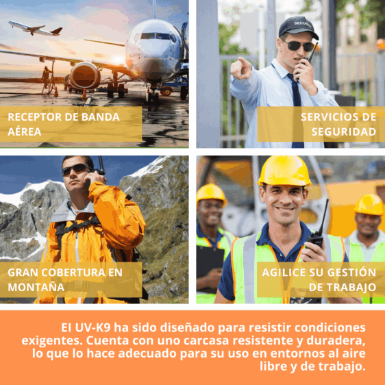 Diseño robusto: El UV-K9 ha sido diseñado para resistir condiciones exigentes. Cuenta con una carcasa resistente y duradera, lo que lo hace adecuado para su uso en entornos al aire libre y de trabajo.
