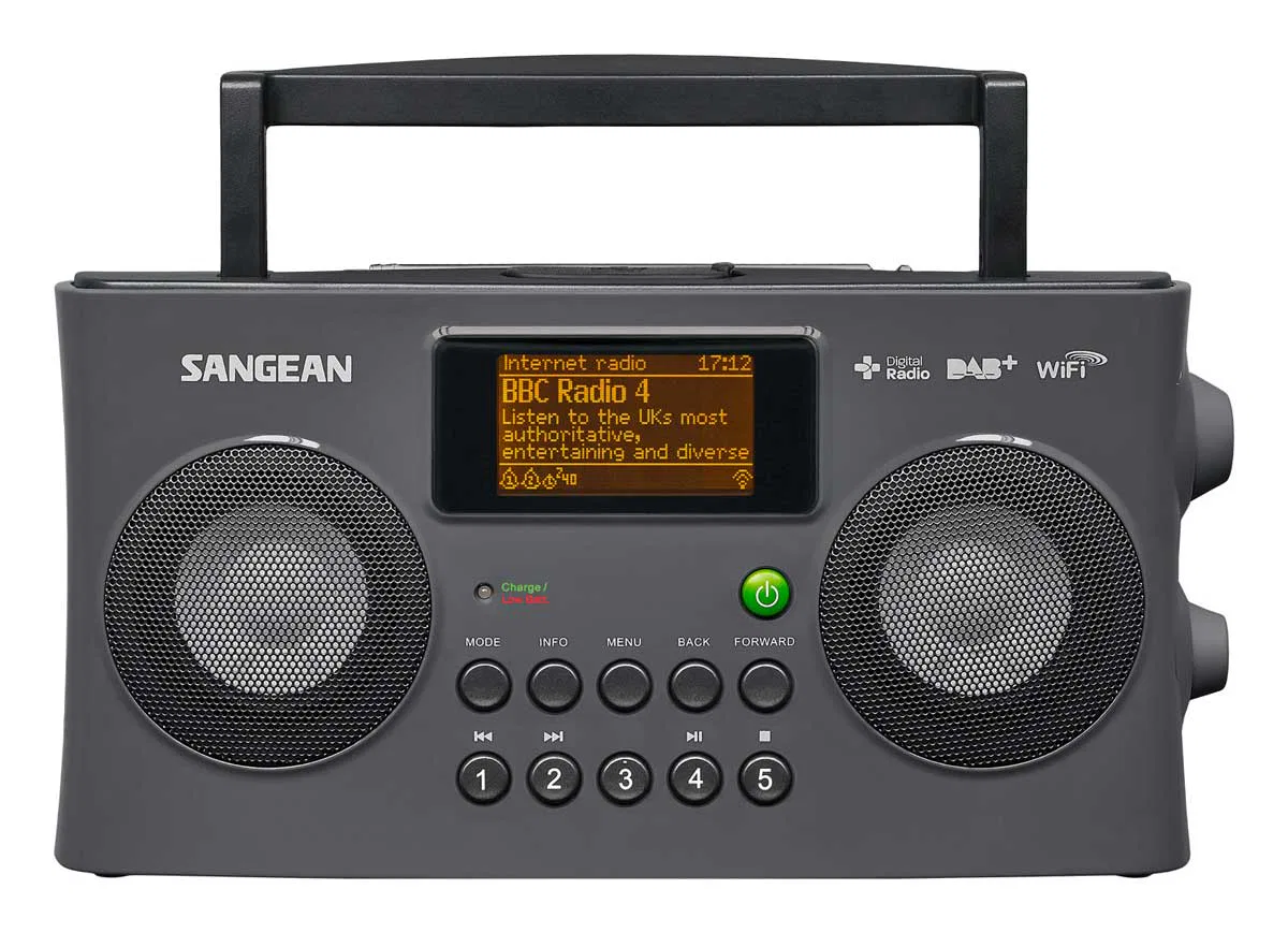Reproduce la música almacenada en tu computadora. Buscar por país, género y mis radios favoritas. Plug and Play. UPnP streaming de música DMR (DLNA 1.5 obediente). Bass y treble control. Plano / Jazz / Rock / película / Classic / Pop / noticias de sonido efecto. Temporizador de alarma 2 por DAB / FM / radio por Internet o zumbador.Temporizador para dormir.Función Snooze. Funciona con pilas recargables y pilas secas (no inluidas). Cargador de batería rápido incorporado. Tamaño portátil con asa de transporte fácil.Conectores I/O: DC, Aux-in, salida de línea, auriculares y conector USB