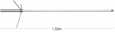 144/430 MHz. 1/2 l – 2 x 5/8 l. 3,0 dBi – 5,5 dBi. 150 W. máx. 3 radiales de 19 cms. 130 cms. En fibra de vidrio. 60 m/s. máx.. Conector UHF hembra