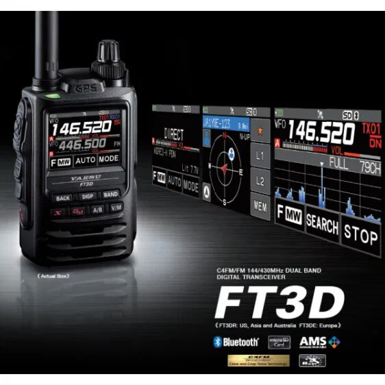 Una de las nuevas características es sin duda la adición de un espectro de alta resolución que permite a los usuarios monitorear hasta 79 canales centrados en la frecuencia de VFO actual en tiempo real. Encontramos las características de la comunicación digital C4FM que ya son muy populares en el mercado, como el funcionamiento en modo de selección automática (AMS), la operación “ID de grupo digital (DG-ID)” y la función de navegación inteligente. El nuevo FT3DE garantiza, por supuesto, la función WIRES-X.