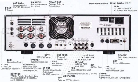 - Impedancia de Antena: 50 ohms balanced, 16.7 to 150 Ohms, unbalanced (Tuner ON, 1.8-29.7 MHz)